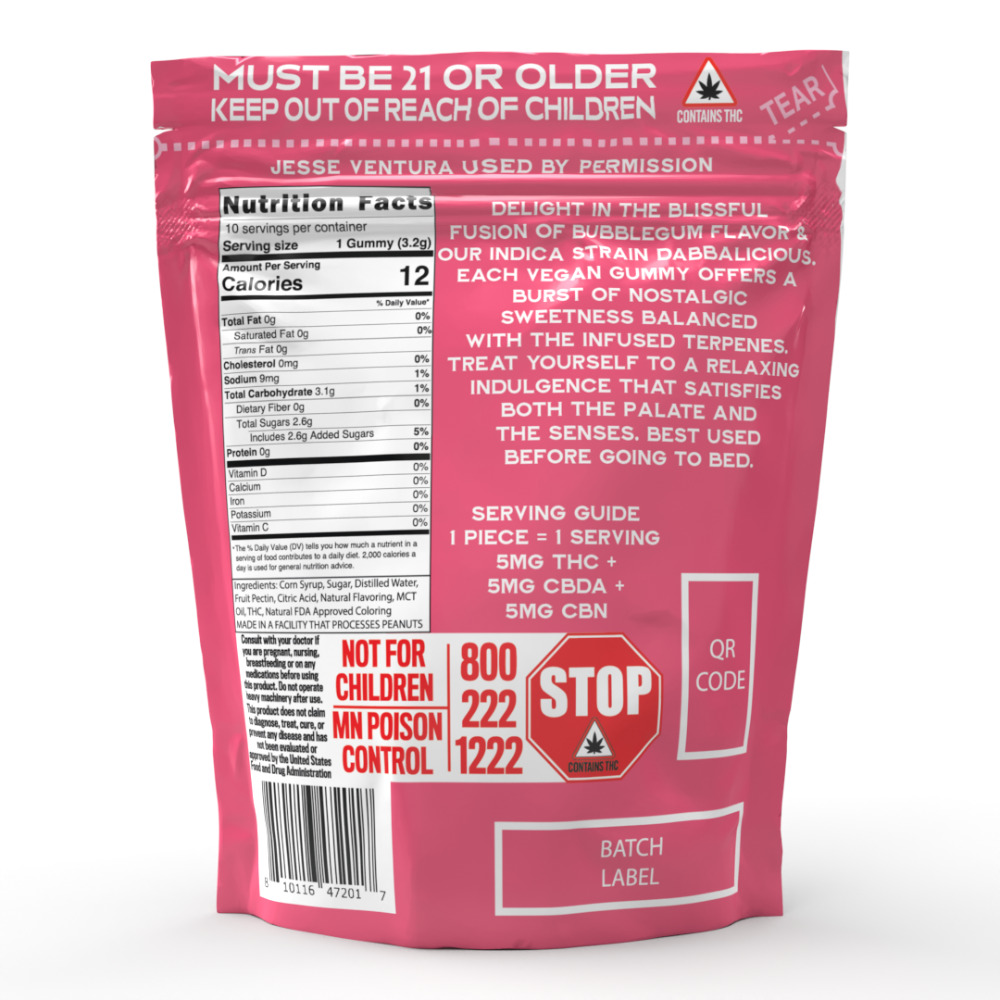 Dabbalicious Bubblegum Vegan Gummies - Full Spectrum650mg THC + 50mg CBN + 50mg CBDA